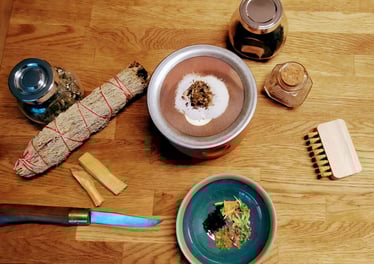 Wahrscheinlich bin ich eine "grüne Hexe", weil ich gerne mit Kräutern, Steinen und überhaupt Naturprodukten arbeite. Aber auch zu Tieren habe ich eine intensive Verbindung. Meine "Magie" übe ich immer mit meinen Händen aus, weil Berühren meine Bestimmung ist.