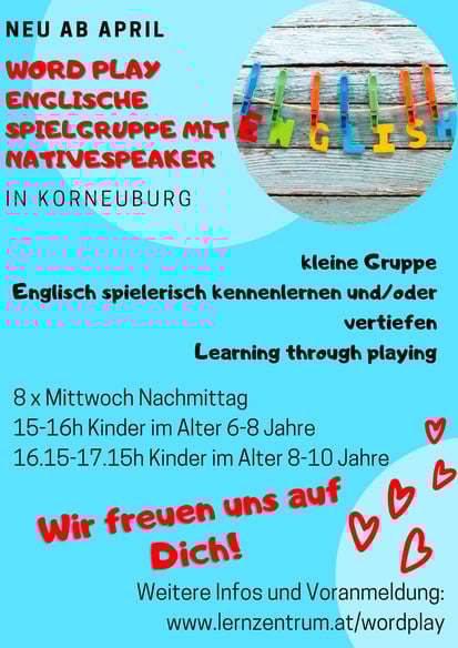 Unsere WORD PLAY Englisch-Spielgruppe mit Nativespeakerin Nicole für Kinder ab ca. 6 Jahren!